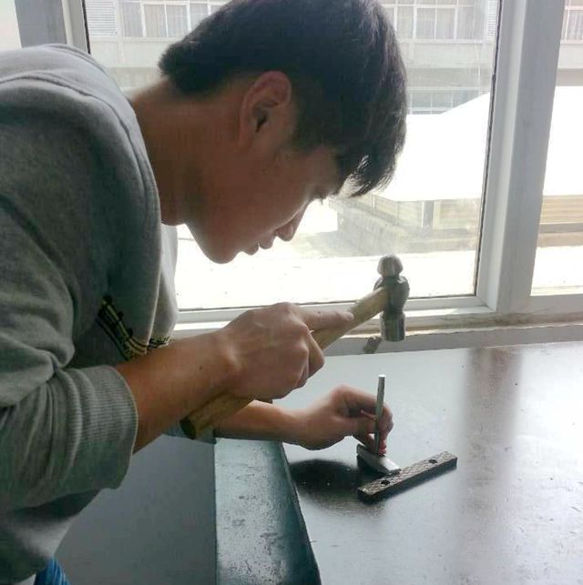 圖為同學(xué)們對(duì)小錘孔內(nèi)螺紋加工