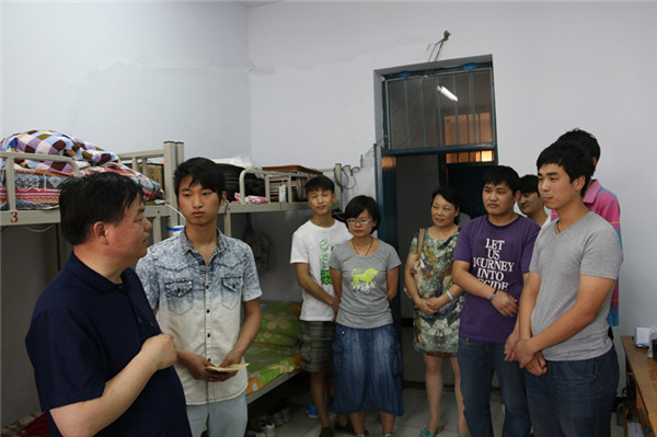 學(xué)院主要領(lǐng)導(dǎo)深入班級(jí)和學(xué)生,進(jìn)行走訪調(diào)研,在對(duì)學(xué)生整體情況調(diào)查了解的基礎(chǔ)上,5月29日上午,楊德嶺院長(zhǎng)冒著酷暑,到學(xué)生宿舍,親切看望了2013級(jí)張團(tuán)結(jié)、蔣方圓同學(xué),并分別將3000元、2000元(共計(jì)5000元)資助金送到了他們手中。蔣方圓同學(xué)當(dāng)場(chǎng)流下了感動(dòng)的淚水。楊院長(zhǎng)叮囑他們,一定要努力學(xué)好科學(xué)文化知識(shí),掌握扎實(shí)的技能操作本領(lǐng),將來(lái)以優(yōu)異的成績(jī)回報(bào)家庭、回報(bào)社會(huì)。楊院長(zhǎng)還特別鼓勵(lì)他們,要積極參與學(xué)院目前開展的文明教育系列活動(dòng),不斷加強(qiáng)自身素養(yǎng),以實(shí)際行動(dòng)在學(xué)生中做表率,做社會(huì)需要的、高素質(zhì)的合格人才。最后楊院長(zhǎng)還告訴在場(chǎng)的學(xué)生,學(xué)院的發(fā)展需要大家共同努力,歡迎同學(xué)們通過(guò)各種渠道及時(shí)反映學(xué)院在教學(xué)、管理及各方面存在的問(wèn)題,學(xué)院一定會(huì)竭盡所能,為同學(xué)們提供最優(yōu)質(zhì)的服務(wù)。