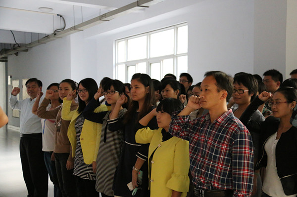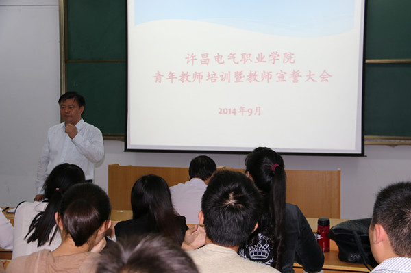 9月29日下午4點30分,我院在教學(xué)樓多媒體教室舉行青年教師培訓(xùn)暨教師宣誓大會。學(xué)院院長楊德嶺、學(xué)院人事處負責(zé)人郭紅軍、教務(wù)處負責(zé)人潘俊峰、學(xué)生處負責(zé)人張慧敏及學(xué)院58名青年教師出席了此次會議。
