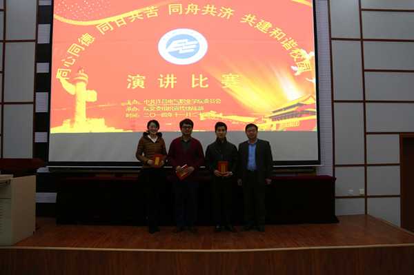 由各黨總支推薦的14位選手按照抽簽的順序依次出場。參賽選手們緊緊圍繞主題,結(jié)合我院實(shí)際情況和自己工作中的親身經(jīng)歷,將個(gè)人的成長發(fā)展與學(xué)院的發(fā)展緊密相連,抒發(fā)愛校之情、敬業(yè)之心,抒發(fā)教書育人的情懷,展示為人師表的風(fēng)采,展望學(xué)院改革發(fā)展的美好未來。比賽中,參賽選手慷慨激昂,將演講推向了一個(gè)個(gè)高潮,為全體教職工帶來了難得的精神大餐。最終,來自機(jī)關(guān)黨總支的肖瑩瑩、電氣工程系黨總支的汪金卡、公共教學(xué)部黨總支的盧營獲得一等獎(jiǎng);電氣工程系黨總支的方召、成人教育部黨總支的胡永芬、經(jīng)濟(jì)管理系黨總支的周理遠(yuǎn)、機(jī)關(guān)黨總支的劉書源、經(jīng)濟(jì)管理系黨總支的鄭嘉君獲得二等獎(jiǎng);藝術(shù)系黨總支的白鴿、信息工程系黨總支的常龍珠、公共教學(xué)部黨總支的邊艷華、成人教育部黨總支的李祿源、機(jī)電工程系黨總支的李超倫、張煥可獲得三等獎(jiǎng)。楊德嶺院長及評(píng)委為獲獎(jiǎng)選手現(xiàn)場頒獎(jiǎng)。