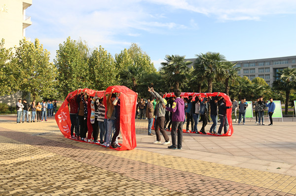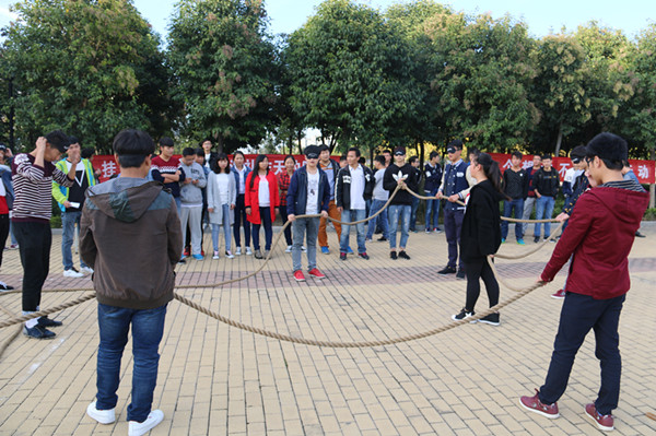 啟動(dòng)儀式后各項(xiàng)豐富多彩的心理活動(dòng)隨之展開,通過(guò)“合力風(fēng)火輪”、“孤島求生”、“蒙眼五角星”等各種有趣且有益身心健康的小游戲,使同學(xué)們?cè)谟螒蛑畜w會(huì)到只有互幫互助、同心協(xié)力才能創(chuàng)造團(tuán)體成功的機(jī)會(huì)。