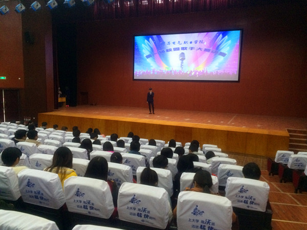 11月18日下午,我院首屆校園歌手大賽決賽在會(huì)議中心隆重舉行。本次大賽共有四十多位選手報(bào)名參加,經(jīng)過層層選拔,最后有十位選手進(jìn)入決賽。組宣部、團(tuán)委和各系教師代表擔(dān)任此次決賽的評(píng)委。