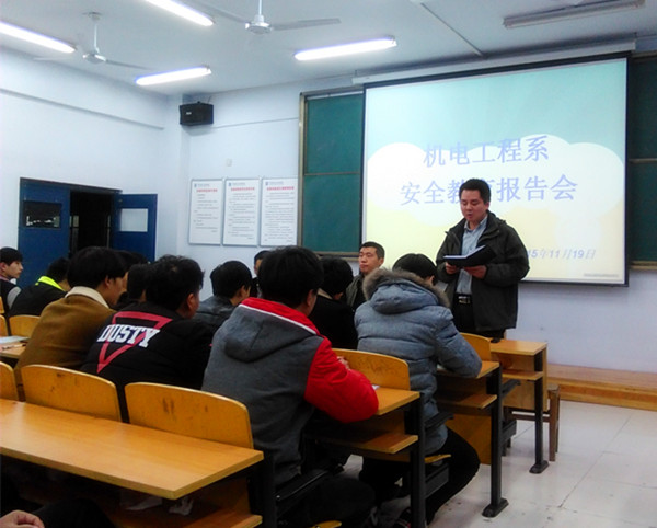 為積極響應(yīng)學(xué)院“校園安全教育周”活動(dòng),加強(qiáng)校園安全教育工作,提高師生安全防范意識(shí),引導(dǎo)全系師生關(guān)注校園安全,牢固樹立安全第一的思想,機(jī)電工程系以創(chuàng)建平安校園理念為指導(dǎo),組織開展了一系列豐富多彩的安全教育活動(dòng)。