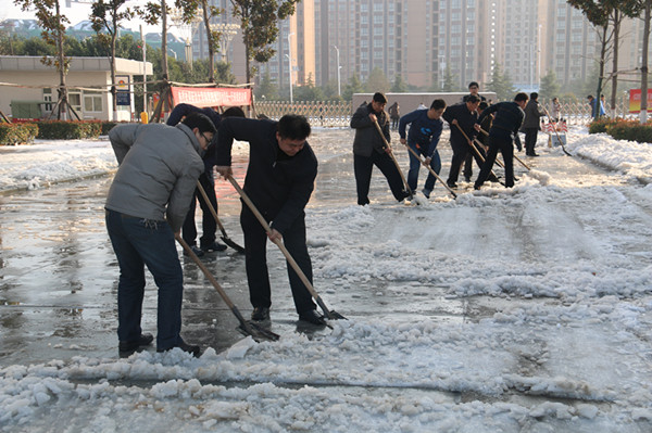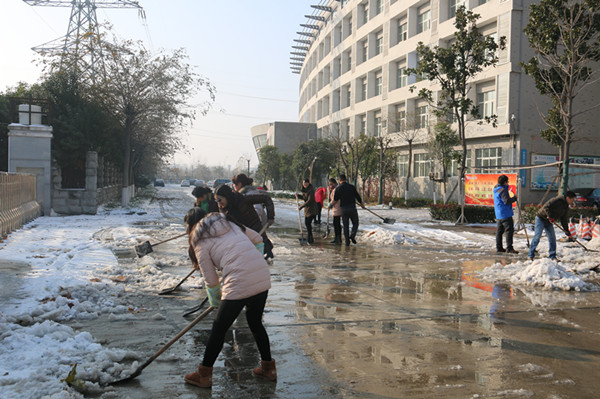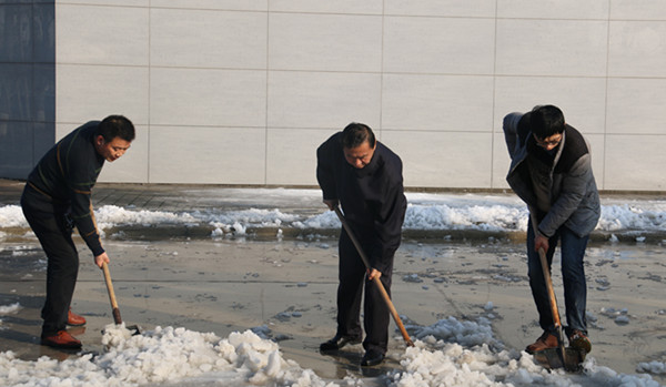 近日,我市普降大雪,大雪在給人們帶來欣喜的同時(shí),也給過往師生們出行帶來了極大的不便和安全隱患。為保障降雪后校內(nèi)通行安全和校園環(huán)境的整潔,11月25日下午3時(shí),我院黨委書記楊魯西,院長(zhǎng)楊德嶺等領(lǐng)導(dǎo)身先士卒,帶領(lǐng)全體行政人員迎著寒風(fēng)在行政樓前開始了一場(chǎng)掃雪活動(dòng)。