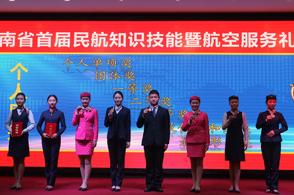 本次大賽共設航空形象展示、才藝展示、個人風采、知識問答、微笑天使五個大模塊。我院學生以親切熱情的微笑、扎實的基本功感染了現(xiàn)場的評委和嘉賓,在多個環(huán)節(jié)中獲佳績。所獲獎項有:航空形象展示獲得一等獎、最佳輔導老師獎;才藝展示獲最佳創(chuàng)意獎;個人風采環(huán)節(jié)中常丹、張素云分別獲得二等獎、三等獎;張潮媛獲“微笑天使”榮譽稱號。