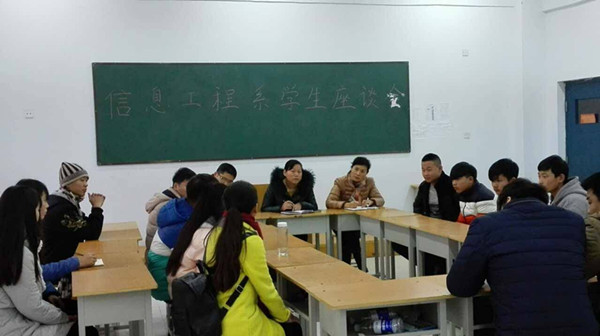 2015年12月7日下午四點,信息工程系在教學(xué)樓415教室召開了學(xué)生代表座談會。信息工程系主任陳曉紅、郭赟和系部管理老師王旭、任甜甜及來自全系九個班級近20名學(xué)生代表參加了此次會議,會議由王旭老師主持。