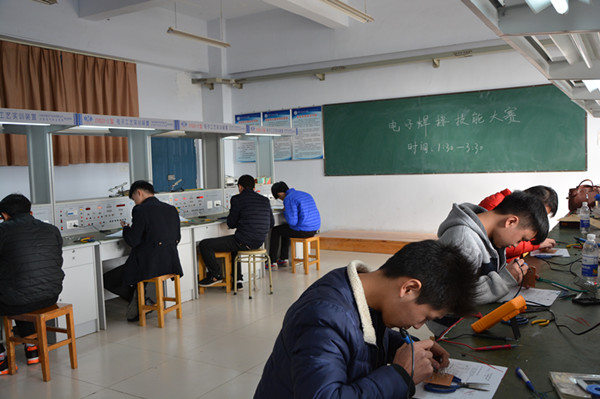 此次學(xué)生技能大賽設(shè)中職組和高職組兩個級別。中職組包括電力拖動、照明線路、電子焊接賽項;高職組包括供配電技術(shù)、PLC自動控制技術(shù)賽項。大賽涵蓋了電氣工程系所有專業(yè)和全部學(xué)生,可以說,一年一度的學(xué)生技能大賽已經(jīng)成為學(xué)生展現(xiàn)自身技能水平、教師檢查自身教學(xué)成果的“檢閱場”。