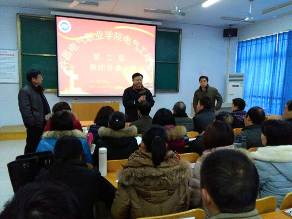 1月22日上午8點(diǎn),許昌電氣職業(yè)學(xué)院電氣工程系第二屆教師教學(xué)大賽在教學(xué)樓210教室舉行。電氣工程系全體專兼職22位教師參加了此次比賽。院長楊德嶺及副院長劉濤、馮朝印蒞臨指導(dǎo),院長楊德嶺點(diǎn)明了教師基本功對于學(xué)院教育的重要性,并對青年教師如何做好課堂教學(xué)提出了寶貴意見。本系高級以上教師共6人作為評委認(rèn)真聽取了選手的講課。本次大賽旨在“激勵(lì)教學(xué)創(chuàng)新,提高教學(xué)水平,加強(qiáng)隊(duì)伍建設(shè)”,是對所有參賽教師綜合素質(zhì)的一次全面考核,同時(shí)為所有老師提供一個(gè)彼此了解、相互學(xué)習(xí)的平臺。