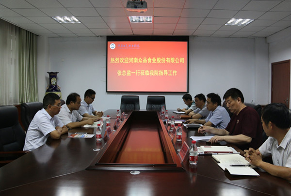 6月23日下午,河南眾品食業(yè)有限公司總監(jiān)張民權(quán)一行到我院洽談校企合作事宜。學院馮朝印副院長熱情接待張民權(quán)總監(jiān)一行并召開座談會。教務處、設(shè)備與實訓管理中心、電氣工程系、機電工程系等相關(guān)部門負責人參加會議。
