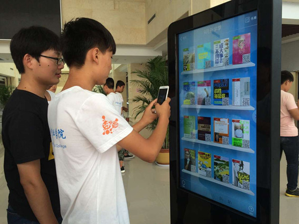 手機(jī)掃一掃,圖書(shū)“裝”進(jìn)來(lái)。9月13日下午,許昌電氣職業(yè)學(xué)院圖書(shū)館內(nèi)人潮涌動(dòng),首臺(tái)觸摸自助式電子圖書(shū)借閱機(jī)閃亮 “登場(chǎng)”,它的亮相立刻吸引了眾多讀者的目光。首先,工作人員認(rèn)真系統(tǒng)地為讀者講解了借閱機(jī)的使用說(shuō)明,并現(xiàn)場(chǎng)進(jìn)行演示,指導(dǎo)讀者親自操作下載,講解結(jié)束后同學(xué)們紛紛拿出手機(jī)進(jìn)行實(shí)際演練,并能獨(dú)立下載自己喜愛(ài)的電子圖書(shū),大家邊操作邊激動(dòng)地說(shuō):“真是太方便了,只需手機(jī)掃一掃,就能將圖書(shū)帶到身邊,隨時(shí)隨地進(jìn)行閱讀學(xué)習(xí)”。