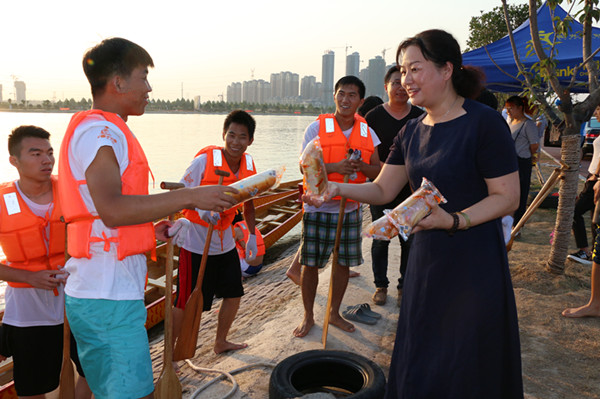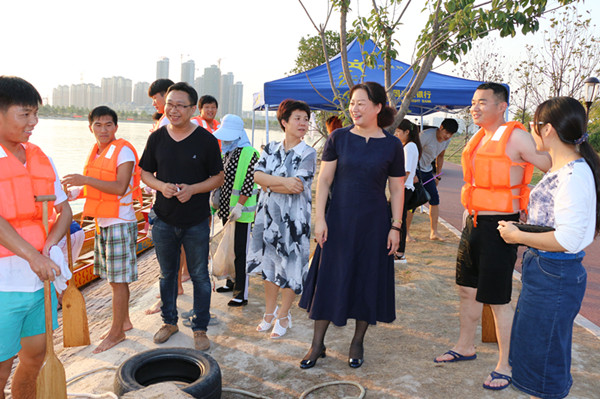 9月22日下午,學(xué)院黨委委員、組宣統(tǒng)戰(zhàn)部部長(zhǎng)張明慧,帶領(lǐng)團(tuán)委負(fù)責(zé)人楊紅培和公共教學(xué)部負(fù)責(zé)人李保茹來(lái)到鹿鳴湖畔,看望在此備戰(zhàn)2016許昌首屆龍舟表演賽的我院師生,并為他們送去了慰問品。