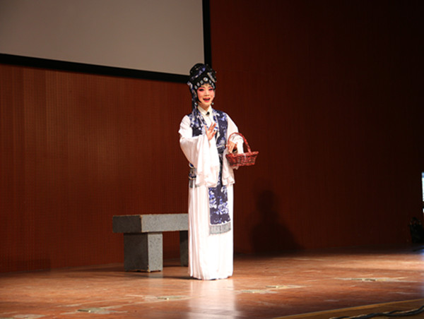 戲曲具有悠久的歷史和獨(dú)特的魅力,把傳統(tǒng)戲曲融入大學(xué)校園,是傳承優(yōu)秀傳統(tǒng)文化的有益方式。下午3點(diǎn)半,戲曲表演在朱禹中老師的戲曲聯(lián)唱中拉開了序幕,隨后的表演中,戲曲名家們紛紛獻(xiàn)上曲劇《江姐·繡紅旗》、《朝陽(yáng)溝·親家母你坐下》、《陳三兩》、《王寶釧》、豫劇《對(duì)繡鞋》、戲曲小品《姐妹對(duì)歌》,并讓廣大師生近距離感受到由曲胡演奏《大起板》的獨(dú)特魅力。