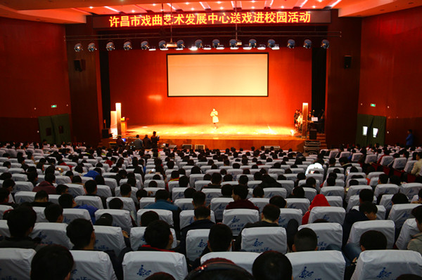 為傳承弘揚(yáng)戲曲文化藝術(shù),推動(dòng)戲曲藝術(shù)傳承,拓寬學(xué)生學(xué)習(xí)藝術(shù)空間,11月30日下午,許昌市戲曲發(fā)展中心的老師們冒著嚴(yán)寒,在學(xué)院會(huì)議中心上演了一場(chǎng)精彩的戲曲演出。學(xué)院黨委委員、組宣部部長(zhǎng)張明慧,學(xué)生處處長(zhǎng)張慧敏與800多名師生一起觀看了演出。