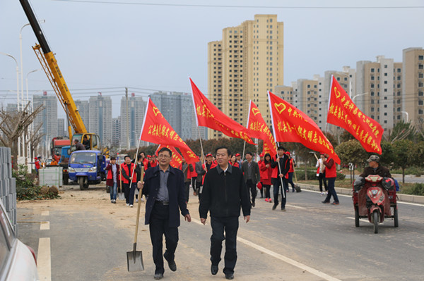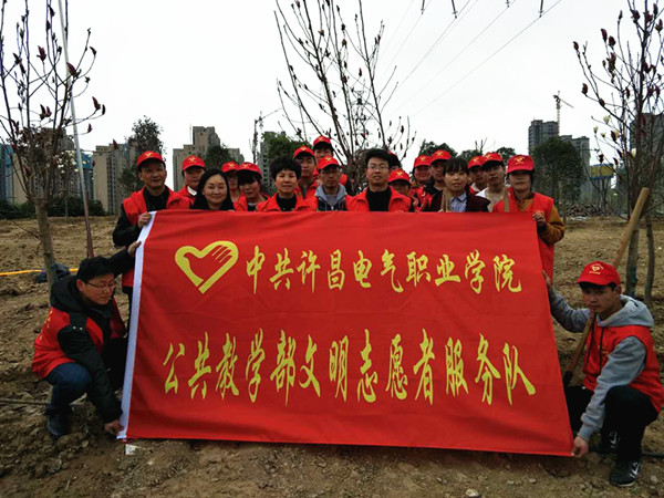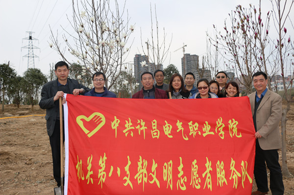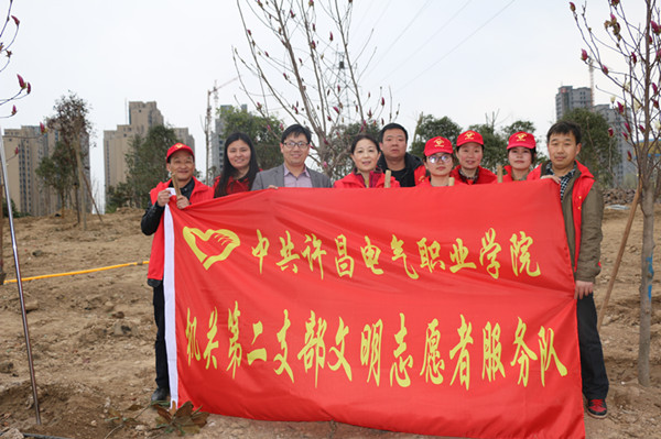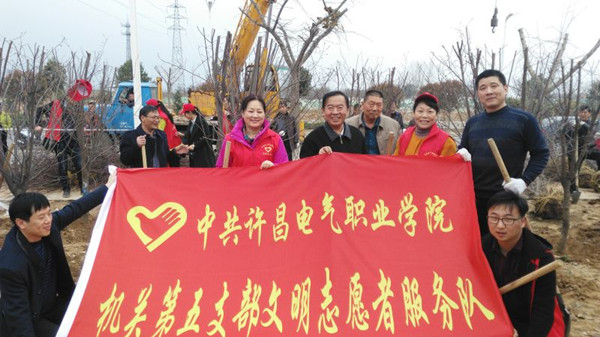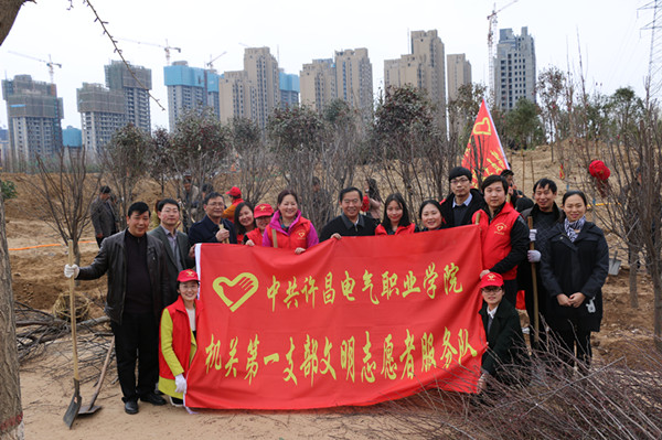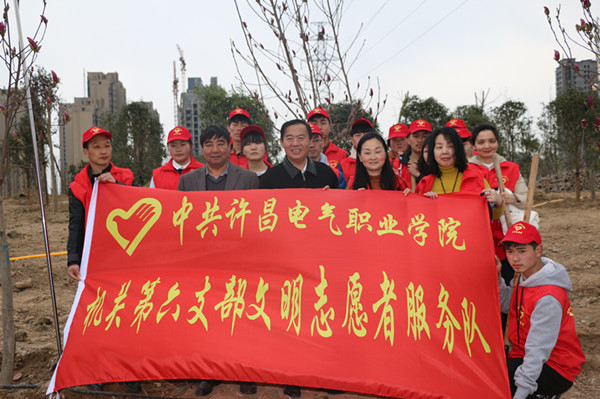 春回大地,萬(wàn)物復(fù)蘇,隨著氣溫的逐漸回升,也迎來(lái)了植樹造林的好時(shí)節(jié)。為積極響應(yīng)我市開展全民義務(wù)植樹活動(dòng)的倡議,3月15日下午,我院機(jī)關(guān)黨總支、成人教育部黨總支和公共教學(xué)部黨總支全體黨員志愿者及部分學(xué)生代表100余人,扛著志愿者服務(wù)隊(duì)隊(duì)旗,拿著鐵锨等工具到許昌中軸景觀項(xiàng)目開展義務(wù)植樹活動(dòng)。