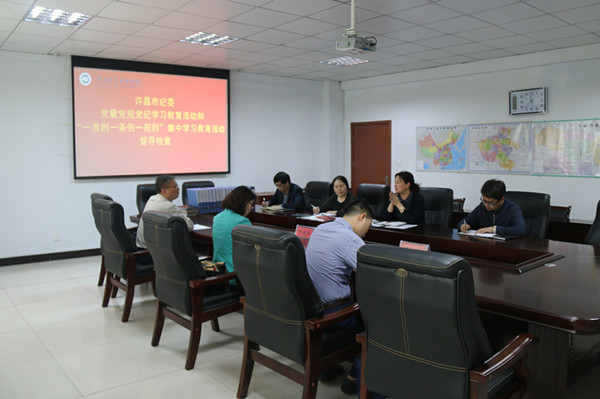 4月21日上午,許昌市紀(jì)委黨章黨規(guī)黨紀(jì)及“一準(zhǔn)則一條例一規(guī)則”集中學(xué)習(xí)教育活動(dòng)第六督導(dǎo)組組長(zhǎng)申建華,組員蔡文立、梁良一行三人蒞臨我院,對(duì)兩項(xiàng)學(xué)習(xí)教育活動(dòng)開展情況進(jìn)行督導(dǎo)檢查。黨委委員,組宣部部長(zhǎng)張明慧陪同。