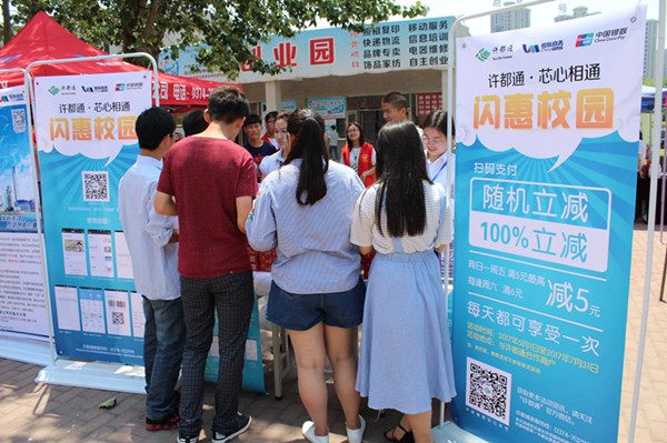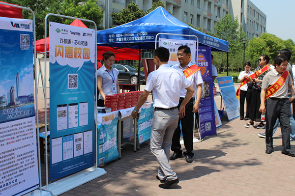 5月26日上午, 許昌市居民一卡通運(yùn)營(yíng)有限公司與許昌市多家銀行聯(lián)合,到我院開展以"科技創(chuàng)新驅(qū)動(dòng) 金融普惠民生"為主題的《許都通· 閃惠校園》活動(dòng)。