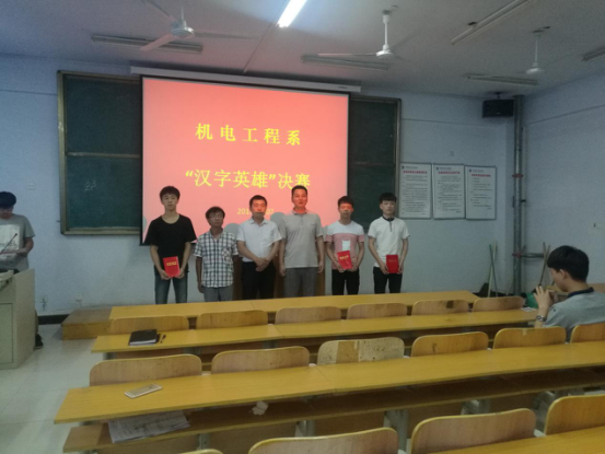 6月中旬,決賽在教學樓A210教室舉行。決賽所聽寫的漢字既有易錯易混漢字,還有隨機從《新華字典》中抽取的漢字,經(jīng)過三輪的激烈角逐,15機電數(shù)控班的侯文彬榮獲第一名、15汽修一班的郭海龍和15機電數(shù)控班的謝怡分獲二、三名。比賽結束后,機電工程系負責人馮振華對本次比賽作了點評,并為獲獎選手頒獎。