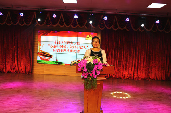 來自黨委辦公室的肖瑩瑩老師用《青春因夢而閃光 電院因我們而輝煌》,表達(dá)了自己作為老師的無怨無悔;公共教學(xué)部的盧營老師《千秋之約 師魂無邊》,詮釋了作為一名教師的自豪和發(fā)自內(nèi)心的幸福感;紀(jì)委監(jiān)察審計處的王眾毅老師《守望夢想 靜待花開 》,抒發(fā)了教師的愛與責(zé)任;藝術(shù)系的白鴿老師用《師德鑄就中國夢》表達(dá)了自己對學(xué)生的關(guān)愛和呵護(hù)之情;信息工程系的薛小瑞老師用《怎樣做一名好教師》講述了自己在從教路上求索、學(xué)習(xí)、實踐和成長的故事...... 他們的演講深深感染著現(xiàn)場的每一個人。這次比賽不僅是一場難得的視聽盛宴,而且思想性、教育性極強,意義深遠(yuǎn)。