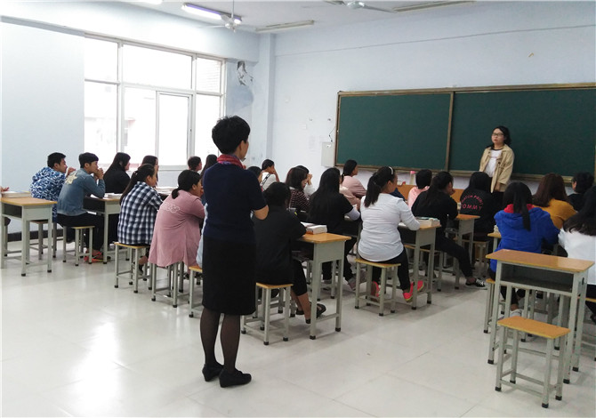 9月4日,是新學期的第一天。盡管天氣下著冰涼的秋雨,教務處全體職工在潘俊峰處長的帶領下一大早就來到教學樓,對新學期的各項工作進行例行檢查。教學樓的教室里已經傳來了老師們此起彼伏認真講課的聲音。 通過后門的玻璃窗可以看到每一個學生都安靜的坐在凳子上聽講,并不時做著筆記,并沒有因為是第一天課就松懈。
