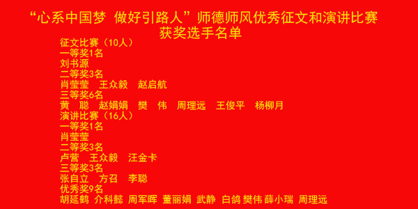 【編者按】“三寸粉筆,三尺講臺(tái)系國(guó)運(yùn);一顆丹心,一生秉燭鑄民魂”在第33個(gè)教師節(jié)到來之際,我院集中表彰了一批優(yōu)秀教師,他們與學(xué)院同呼吸、共命運(yùn),開拓進(jìn)取,直面挑戰(zhàn);他們一步一個(gè)腳印,心無雜念,用心育人。希望全院教師以他們?yōu)榘駱?靜心教書,潛心育人,做學(xué)生成長(zhǎng)道路上的"引路人"。