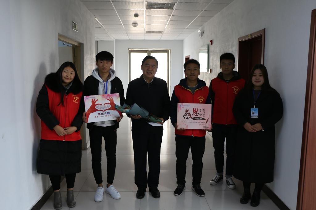 楊書記收到禮物后很感動(dòng),教導(dǎo)學(xué)生說:“同學(xué)們要在學(xué)習(xí)專業(yè)知識(shí)的同時(shí)學(xué)會(huì)感恩,為自己已有的而感恩,感謝父母、老師給你的一切贈(zèng)予。”同學(xué)們聽的十分認(rèn)真!