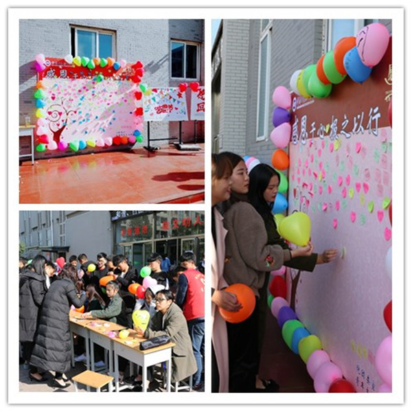 為深入開展“感恩教育”活動(dòng),引導(dǎo)每一位學(xué)生懂得感恩父母、感恩學(xué)校、感恩老師。11月23日上午,院團(tuán)委組織號(hào)召,院團(tuán)委會(huì)、青協(xié)主辦的‘感恩于心,回報(bào)以行’的感恩節(jié)活動(dòng)如期開展。