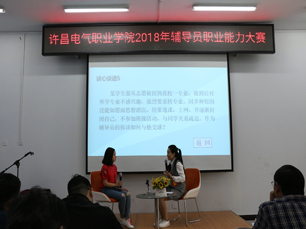 比賽中,各位參賽輔導員立足本職工作,通過談心談話和主題演講兩個環(huán)節(jié),充分展示了高超的談話技巧和對輔導員工作的熱愛,選手的精彩表現(xiàn)得到了現(xiàn)場師生的一致好評。