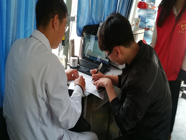 獻(xiàn)血流程分:在志愿者點(diǎn)處填寫獻(xiàn)血表;上車將表遞給化驗(yàn)血液處;領(lǐng)取化驗(yàn)表;開始抽血。在車上,醫(yī)護(hù)人員提出給需要獻(xiàn)血的同學(xué)們倒溫水,這樣做會(huì)預(yù)防在獻(xiàn)血過程中出現(xiàn)頭暈,心跳加速等情況的發(fā)生。志愿者牢記在心,認(rèn)真的給每一位獻(xiàn)血的同學(xué)倒水。并囑咐他們回去多休息多喝水。
