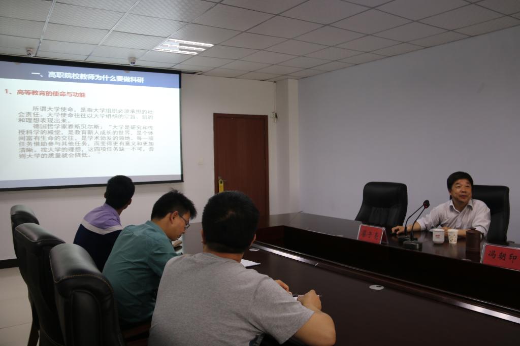 為調(diào)動我院教師申報科研課題的積極性,提升我院教師的科研素養(yǎng),5月9日下午,學(xué)院特邀蔡子亮教授到我院做題為《高職院校教師科研能力培養(yǎng)與提升》學(xué)術(shù)報告。院長楊德嶺教授、副院長馮朝印教授出席會議,副院長商淑敏教授主持會議。