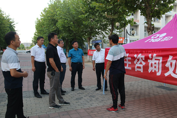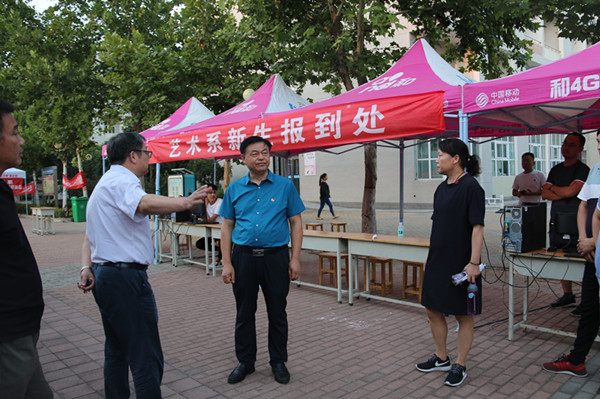 9月7日下午5:50,院長楊德嶺、副院長劉濤、工會(huì)主席張勇一行在院長辦公室、學(xué)生處、后勤與基建管理處等單位相關(guān)負(fù)責(zé)同志陪同下,對(duì)各部門的迎新準(zhǔn)備工作進(jìn)行了實(shí)地察看,提出了指導(dǎo)意見。