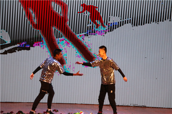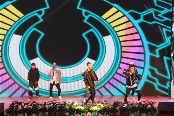 ????機(jī)電工程系焦鵬宇、韋望、李博充滿青春色彩的《街舞串燒》跳出了小伙們們英朗的姿態(tài),顧盼生輝的神采。