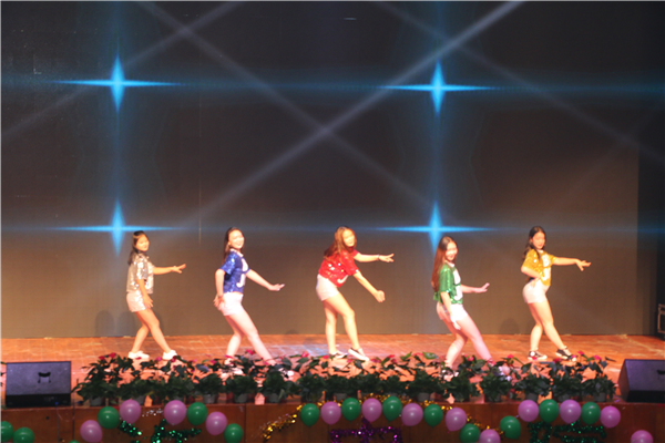 ????藝術(shù)系、經(jīng)管系趙露露、婁佳怡、李明慧、馬瑩瑩、張杏花《燃燒我的卡路里》仿佛現(xiàn)場燃燒了觀眾的卡路里一樣火爆!