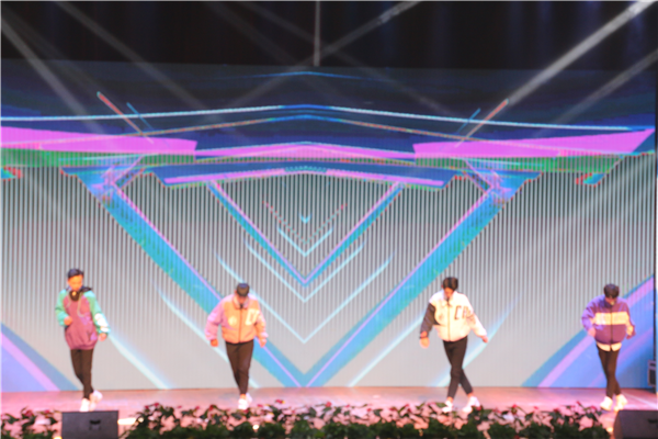 ????機(jī)電工程系、經(jīng)濟(jì)管理系、信息系張怡偉、葉皓辰、楊帆、王萍宇《Dance To B-Box》帶領(lǐng)觀眾領(lǐng)略潮流風(fēng)采。