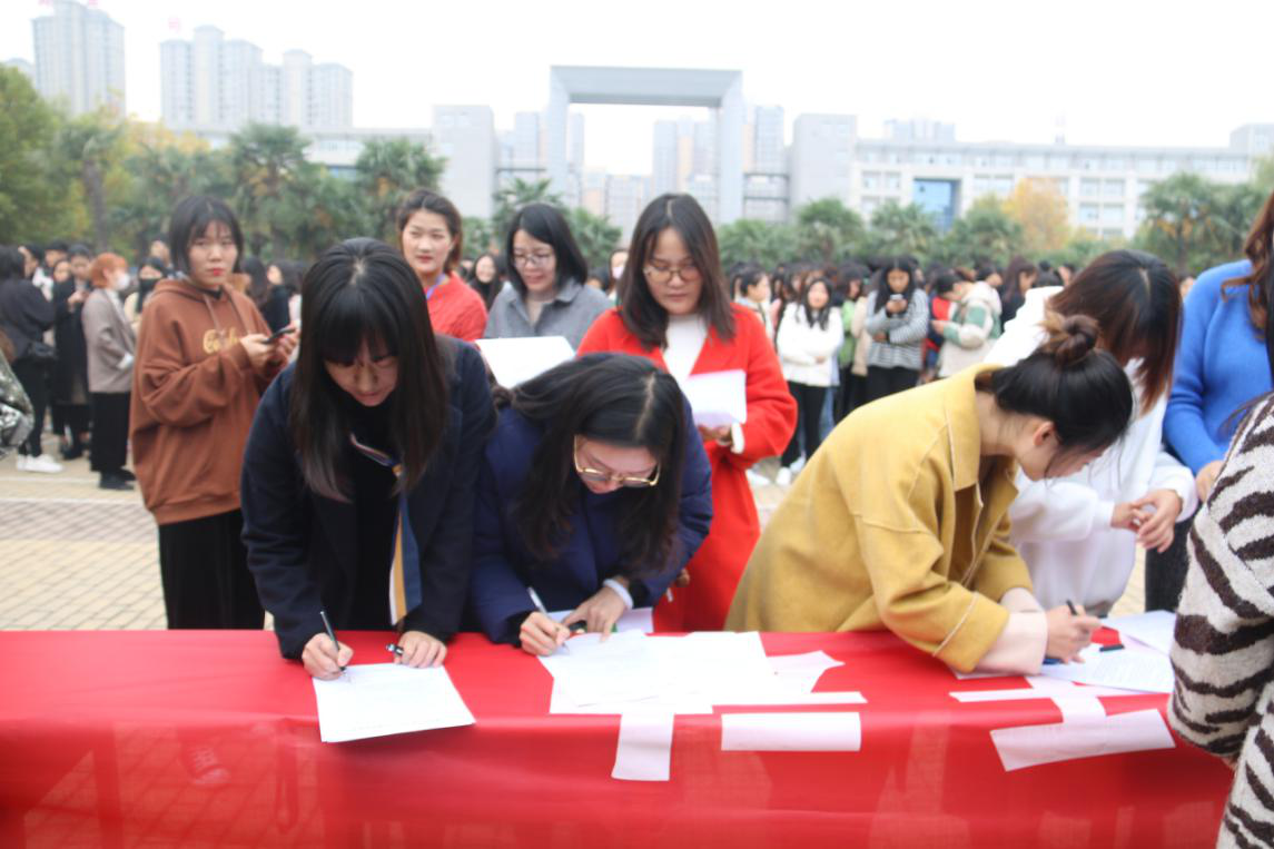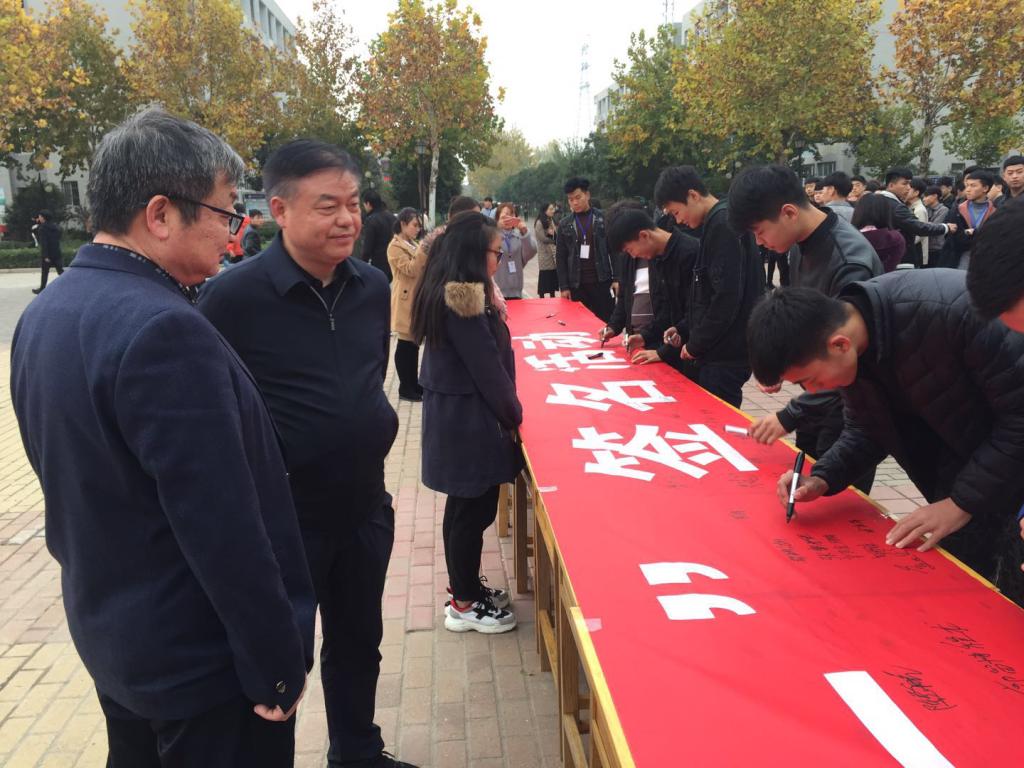 ????在活動(dòng)期間,院長(zhǎng)楊德嶺、副院長(zhǎng)劉濤、學(xué)生處負(fù)責(zé)人張慧敏及各系部負(fù)責(zé)人全程參與其中,將本次活動(dòng)意義認(rèn)真告知老師和學(xué)生,強(qiáng)調(diào)了安全的重要性。各系部有序組織了學(xué)生在指定位置集中進(jìn)行簽名。