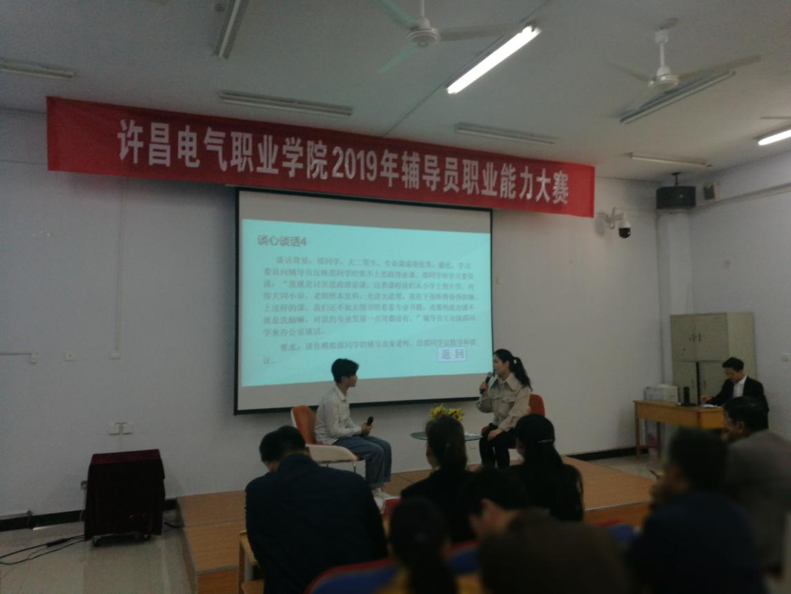 ????本次輔導(dǎo)員職業(yè)能力大賽分為初賽和決賽兩個階段,3月14日下午,學(xué)生處統(tǒng)一組織輔導(dǎo)員老師進行筆試初試,并進行封閉式改卷,最終根據(jù)筆試成績,推選出郭靖怡等12名輔導(dǎo)員進入本次比賽決賽。決賽分為談心談話和理論宣講兩個環(huán)節(jié)。比賽現(xiàn)場,選手們沉著冷靜,在談心談話環(huán)節(jié),輔導(dǎo)員們從案例出發(fā),耐心傾聽、細心疏導(dǎo),充分反映了輔導(dǎo)員的專業(yè)素養(yǎng);在理論宣講環(huán)節(jié),輔導(dǎo)員緊扣主題,用生動形象的語言宣講了正能量,充分顯示了輔導(dǎo)員的理論水平。