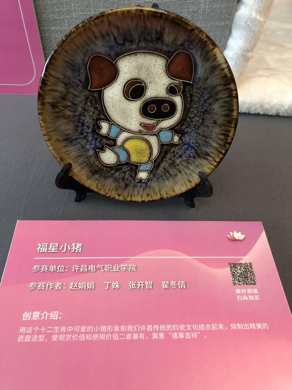 ????“魅力中原”第三屆文化創(chuàng)意大賽經(jīng)過三個多月的作品征集,共收到來自全國文創(chuàng)企業(yè)、單位、個人以及全國多所高校的600余件參賽作品,有250余件作品在許昌市“魅力中原”第三屆文化創(chuàng)意大賽精品展進行展出。經(jīng)專家評審共有35件作品脫穎而出,摘得金、銀、銅獎,其中我院趙娟娟、丁姝等老師的參賽作品《福星小豬》榮獲了銅獎。