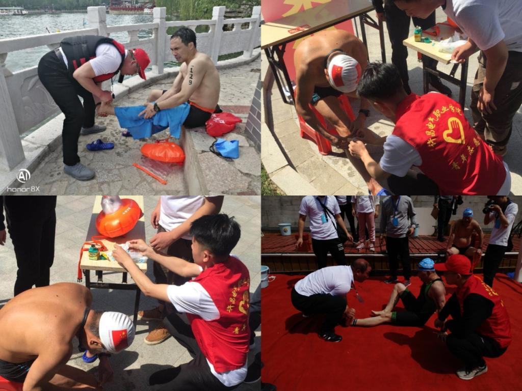 我院師生志愿者在運(yùn)動(dòng)員休息處協(xié)助裁判對(duì)受傷運(yùn)動(dòng)員進(jìn)行傷口處理、包扎