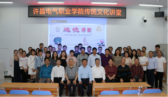 ????5月的初夏,和風惠暢。為努力挖掘中華優(yōu)秀傳統(tǒng)文化的精神內涵,深入培育和踐行社會主義核心價值觀,夯實我院思想道德教育成果,11日至12日,我院特邀請到中華炎黃文化研究會文明傳承聯(lián)合會高以忱、王寶寨、薛松和趙龍四位老師分別在學院第二報告廳和道德講堂教室進行為期兩天的“傳統(tǒng)文化講堂”授課。學院領導班子、中層干部及全體教職工參加本次活動,同時學院邀請到部分省市教育局局長及中小學校長、許昌經濟技術開發(fā)區(qū)中小學校長及部分教師代表參加。
