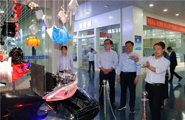 ????座談會后,調(diào)研組一行來到我院實訓樓和汽車實訓中心,實地察看了我院教學環(huán)境和實訓情況。