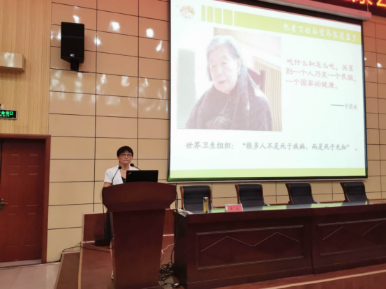 ????今年的5月20日是第30個(gè)“中國學(xué)生營養(yǎng)日”。為了宣傳營養(yǎng)與健康知識(shí),幫助學(xué)生培養(yǎng)高質(zhì)量的健康飲食習(xí)慣,進(jìn)而增強(qiáng)體魄,我院藝術(shù)系于5月20日晚七點(diǎn)在二期階梯教室舉辦了以“科學(xué)飲食 走向健康”為主題的健康公益講座。學(xué)院副院長商淑敏,藝術(shù)系負(fù)責(zé)人閆瑾瑜、董淑紅及師生代表參加講座。該講座特邀中國營養(yǎng)學(xué)會(huì)會(huì)員、許昌市健源職業(yè)培訓(xùn)學(xué)校校長朱紅主講。