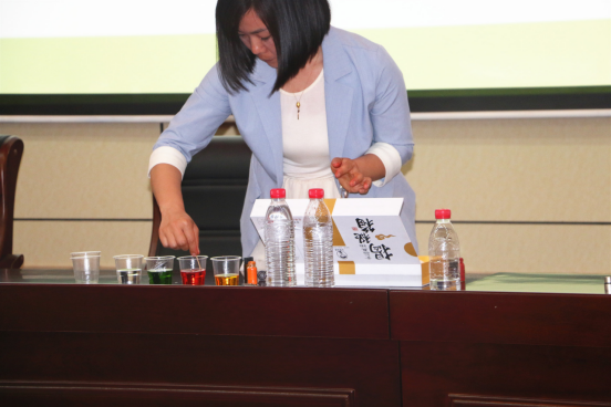 ????講座過程中,朱紅老師以生動(dòng)幽默、貼近生活的語言,為同學(xué)們科普營養(yǎng)與健康知識(shí)。首先,對在場教職工和同學(xué)的飲食習(xí)慣進(jìn)行了簡單地了解。隨后,從專業(yè)角度講解人體每天所必需的七大營養(yǎng)元素和人體健康四要素,并結(jié)合實(shí)際生活案例從六方面分析中國居民膳食指南。最后,輔助老師通過現(xiàn)場實(shí)驗(yàn)為同學(xué)們揭秘碳酸飲料、垃圾食品的真相與危害,倡導(dǎo)大家培養(yǎng)健康科學(xué)的飲食習(xí)慣。