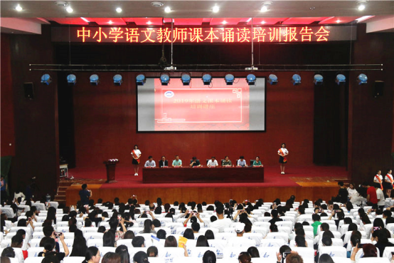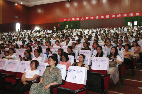 ????為堅定文化自信、夯實語文教育成果、提高教師文化底蘊(yùn)、增強(qiáng)學(xué)院師生對文學(xué)的熱愛和對經(jīng)典的敬重,5月25日,我院邀請中國當(dāng)代聲音語言藝術(shù)大師李立宏和著名聲音工作者周梓銘兩位老師在學(xué)院行政樓西會議中心進(jìn)行語文教師課本誦讀培訓(xùn)報告會。學(xué)院院長、黨委副書記楊德嶺,黨委委員、組織宣傳統(tǒng)戰(zhàn)部部長張明慧出席本次培訓(xùn);同時,學(xué)院邀請到許昌市教育局副局長趙建鵬、許昌市語委辦主任趙德周及許昌市四縣兩區(qū)的七百多名教師代表參加。