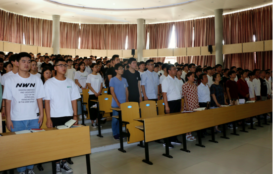 ????為進(jìn)一步做好發(fā)展黨員工作,提高入黨積極分子及發(fā)展對象的思想政治覺悟,端正入黨動(dòng)機(jī),嚴(yán)把黨員入口關(guān),5月30日,我院第五期入黨積極分子及發(fā)展對象培訓(xùn)班開班典禮在一期階梯教室進(jìn)行。院黨委書記楊魯西,黨委委員、組織宣傳統(tǒng)戰(zhàn)部部長張明慧,組織宣傳統(tǒng)戰(zhàn)部副部長張麗,團(tuán)委副書記楊紅培,學(xué)生處副處長張慧敏以及各教學(xué)單位黨總支書記出席會議,我院第五期師生入黨積極分子及發(fā)展對象共計(jì)326人參加。開班典禮由組織宣傳統(tǒng)戰(zhàn)部部長張明慧主持。