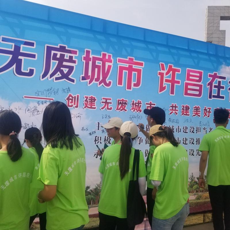????啟動儀式后,我院青年志愿者們不顧高溫酷暑,環(huán)繞許都廣場進行“美麗中國,我是行動者--無廢城市,許昌在行動”講解宣傳、并參與集體簽名,以呼吁廣大市民攜手行動,積極參與生態(tài)文明建設,踐行綠色理念,營造綠色風尚,自覺投身環(huán)境污染防治攻堅戰(zhàn),讓無廢許昌越來越清新自然、光彩靚麗!