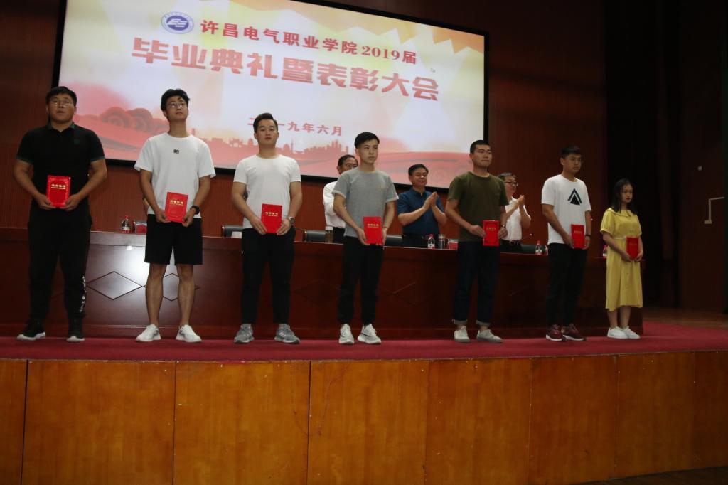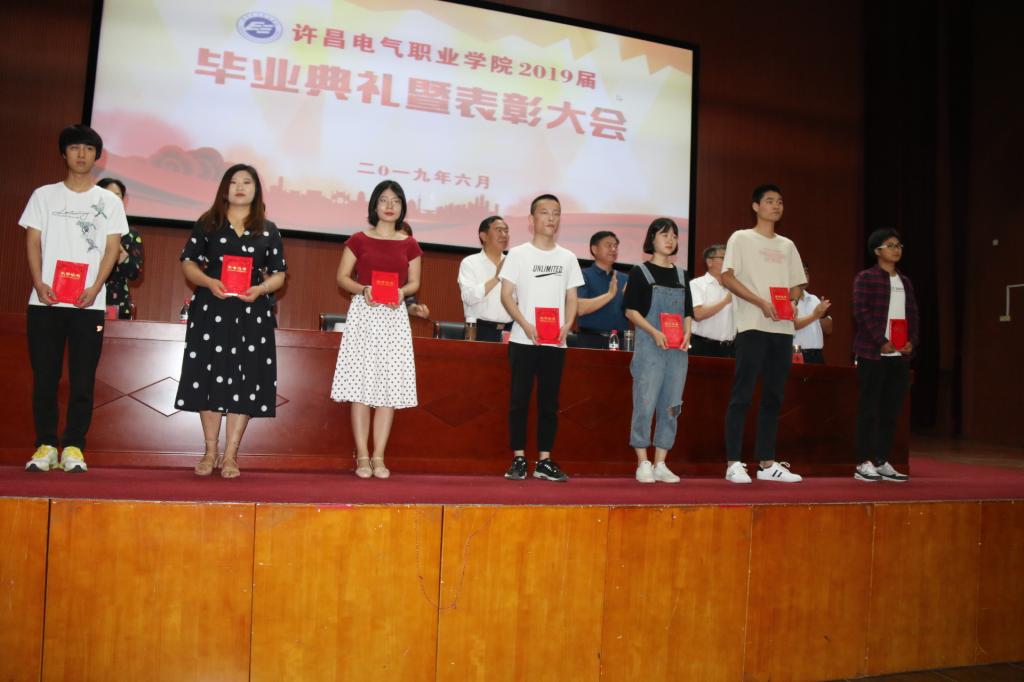 ????畢業(yè)典禮在莊嚴的國歌聲中拉開序幕。副院長商淑敏宣讀了《河南省教育廳關于表彰2019年河南省優(yōu)秀應屆大中專畢業(yè)生的決定》和《許昌電氣職業(yè)學院關于表彰2019年優(yōu)秀應屆畢業(yè)生的決定》。學院領導為獲得2019屆省級、校級的優(yōu)秀畢業(yè)生頒發(fā)榮譽證書并予以祝賀。
