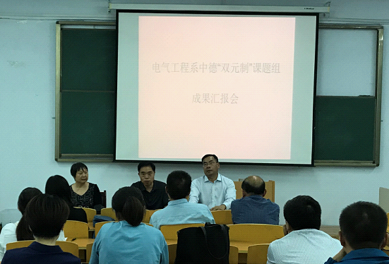 ????首先,馮朝印對課題組前期所做的工作給予充分肯定,從省人社廳、市政府、學(xué)院等層面介紹中德“雙元制”項目面臨的機遇和挑戰(zhàn),認(rèn)真梳理項目實施的重點,并對課題組提出3點要求:1.轉(zhuǎn)變觀念、提升能力。將德國“雙元制”職業(yè)教育理念融入教學(xué)和學(xué)生管理中,開展學(xué)生主體、能力本位、項目驅(qū)動等方面的教育教學(xué)改革和研究,全面實施教師、教材、教法方面的教學(xué)改革和實施工作。2.強力推行、校內(nèi)實踐。學(xué)院積極響應(yīng)國家政策,全面推行“雙元制”、現(xiàn)代學(xué)徒制和企業(yè)新型學(xué)徒制等先進職業(yè)教育。電氣工程系先行先試,需要盡快形成機電類專業(yè)群教學(xué)改革成果,以點帶面,實現(xiàn)校內(nèi)推廣。3.觀摩交流、示范推廣。教學(xué)是一門藝術(shù),課題組應(yīng)加強交流學(xué)習(xí),原原本本學(xué)習(xí),認(rèn)認(rèn)真真研究,踏踏實實踐,客觀公正評價,避免照搬照做,努力形成學(xué)院特色和品牌,打造精品工程。