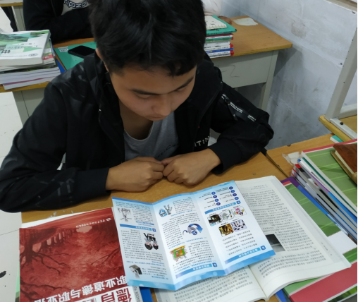 (學(xué)生認(rèn)真學(xué)習(xí)宣傳手冊(cè))
