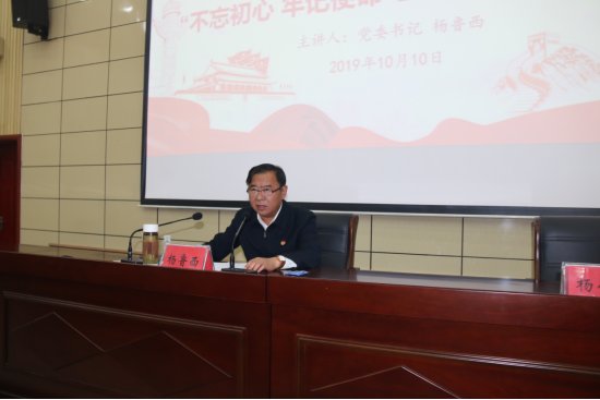 專題黨課上,楊魯西從弄清“初心是什么”,在感悟初心中堅守初心;弄清“師生盼什么”,在扎根師生中造福師生;弄清“重點干什么”,在擔(dān)當作為中展現(xiàn)作為等三個方面,對“不忘初心、牢記使命”主題教育進行了系統(tǒng)、全面地分析與講解。