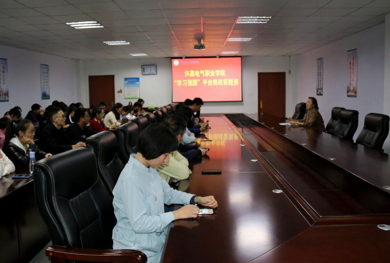 ????為深入貫徹落實習近平總書記關(guān)于加強學習、建設(shè)學習大國重要指示精神,建好、辦好、用好“學習強國”學習平臺,進一步提高廣大黨員學習積極性,10月11日下午,學院舉行了“學習強國”平臺挑戰(zhàn)答題賽。院屬26個單位選拔出政治素質(zhì)過硬、理論素養(yǎng)好、學習積分高的50余名黨員參加了挑戰(zhàn)賽。比賽由組織宣傳統(tǒng)戰(zhàn)部副部長張麗主持。
