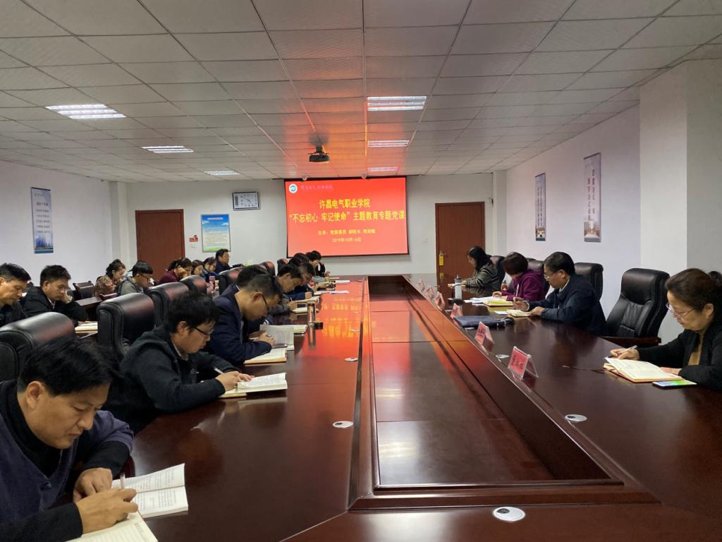 ????為進一步學習宣傳貫徹黨的十九大精神,深化“不忘初心,牢記使命”主題教育,10月14日下午4點30分,人事處、成人教育部、藝術(shù)系、科研處、圖書館五個部門的全體共產(chǎn)黨員在行政樓二樓會議室集合,共同聆聽副院長商淑敏講授專題黨課。